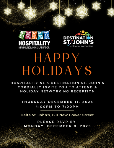 Hospitality NL and Destination St. John's are delighted to extend a warm invitation to you for our Holiday Reception. Join us in celebrating the season with colleagues, friends, and partners from the tourism industry.
